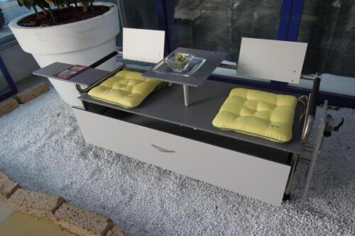 Unsere eleganten Outdoor Sitzbänke sind ausschließlich individuelle Anfertigungen nach Maß – und damit Unikate. Sie haben die freie Auswahl hinsichtlich Größe und Gestaltung, ob das Staufach abschließbar sein soll oder ob sie die Bank auf Rollen – selbstverständlich mit feststellbaren Bremsen –  oder festen Standfüßen haben möchten. Für den maximalen Komfort kann natürlich auch die Lehne nach Wunsch mit Polster ausgestattet werden. Während Sie die Polster zum Schutz unter der Sitzfläche verstauen können, besteht die Bank selbst aus pflegeleichten HPL Kunststoff. Zur Reinigung von witterungsbedingten Schmutz reicht meist ein nasser Lappen.